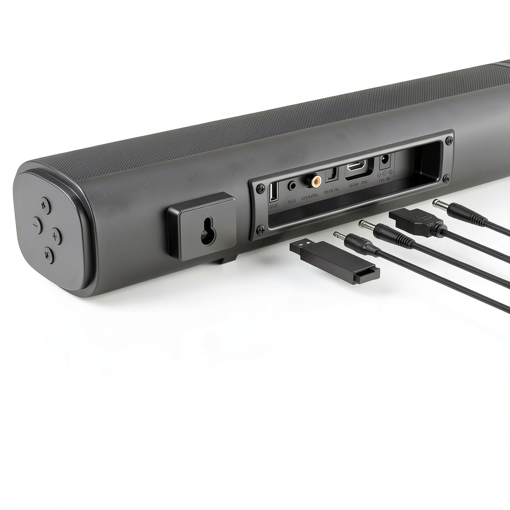 Ideal for home entertainment enthusiasts, this sound bar is perfect for watching action movies, playing video games, or listening to music in your living room, bedroom, or home office. It caters to users seeking an upgrade from standard TV speakers, providing an immersive audio environment for family movie nights, solo gaming sessions, or casual music listening. The three audio modes—Movie, Game, and News—optimize sound for different activities, ensuring clear dialogue, intense effects, or balanced tones as needed. Its wireless subwoofer allows placement anywhere in the room, enhancing bass without cable clutter, making it suitable for spaces where aesthetics and functionality matter.