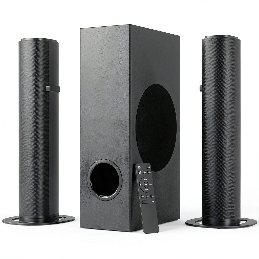 The TOPVISION 4.1ch sound bar with subwoofer is engineered to elevate your audio experience with 120W of high-power output, ensuring rich, dynamic sound for any content. It features four high-performance speakers and an independent wireless subwoofer, creating a 4.1-channel surround sound system that fills your room with deep bass and clear highs. Constructed from durable materials, this sound bar supports multiple inputs including USB, AUX, coaxial, optical, HDMI, and Bluetooth, making it versatile for connecting to TVs, projectors, smartphones, and tablets. The separable design allows for flexible placement, while the included remote control and cables ensure straightforward setup and operation.